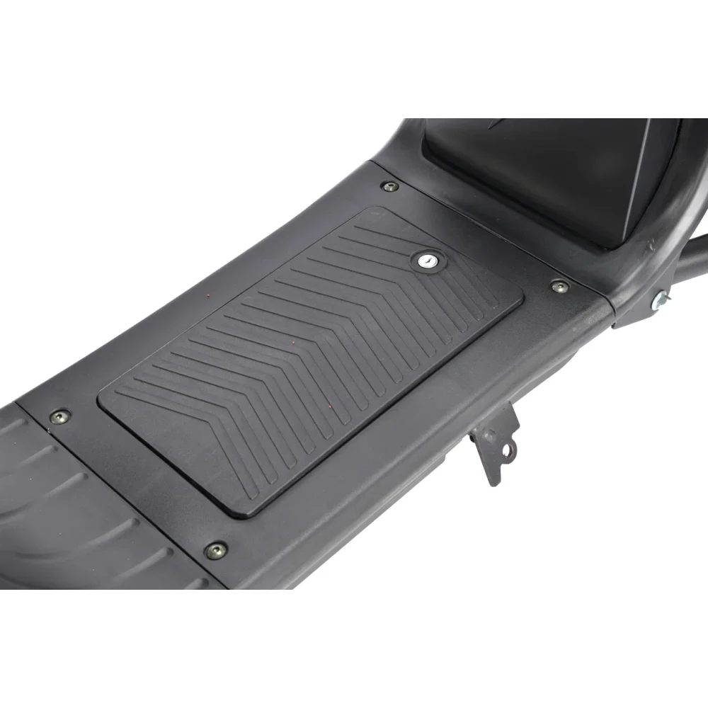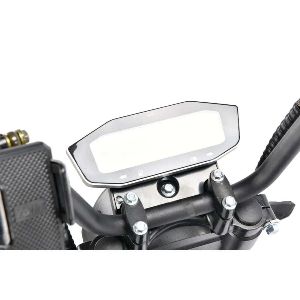 Конструкция выдерживает до 200 кг за счет прочного материала и широкой подножки. Быстро тормозит на любой дороге из-за задних гидравлических и передних дисковых тормозов. Система амортизации усилена по сравнению с прошлыми моделями этой серии. Поэтому дорога становится более комфортной.