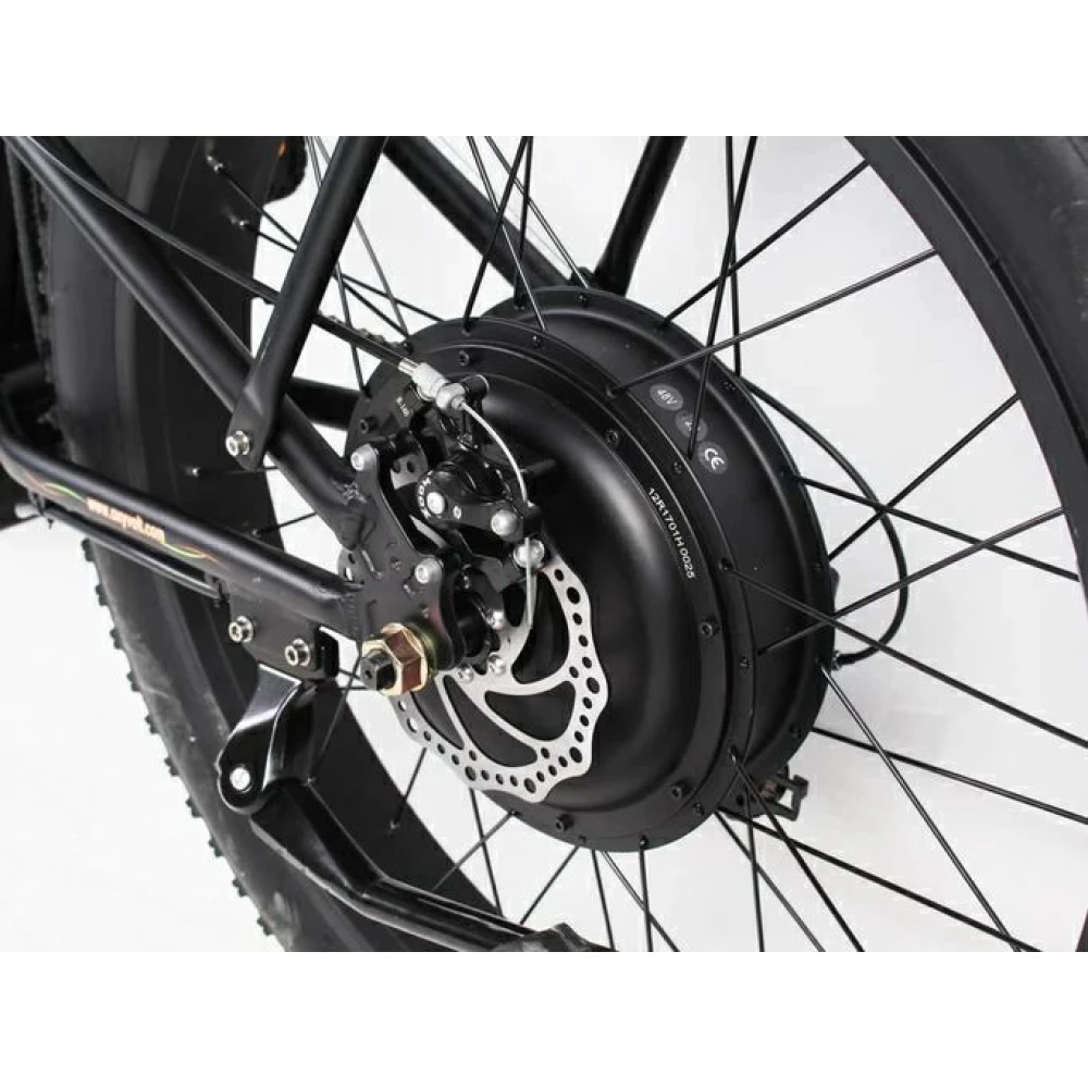 Рама велогибрида представлена цельной конструкцией. Изготовлена из высокопрочного алюминия. При массе 32 кг максимальная грузоподъемность составляет 120 кг. Техника рассчитана для езды в черте города и небольшому бездорожью. При мощности электродвижка 2500 Вт техника способна развить скорость автомобиля – 60 км/час и преодолеть на средних скоростях по ровной дороге расстояние до 100 км. Литий-ионная АКБ емкостью 15 А*ч быстросъемная, заряжается 8часов, размещена в защитном блоке за подседельной частью.