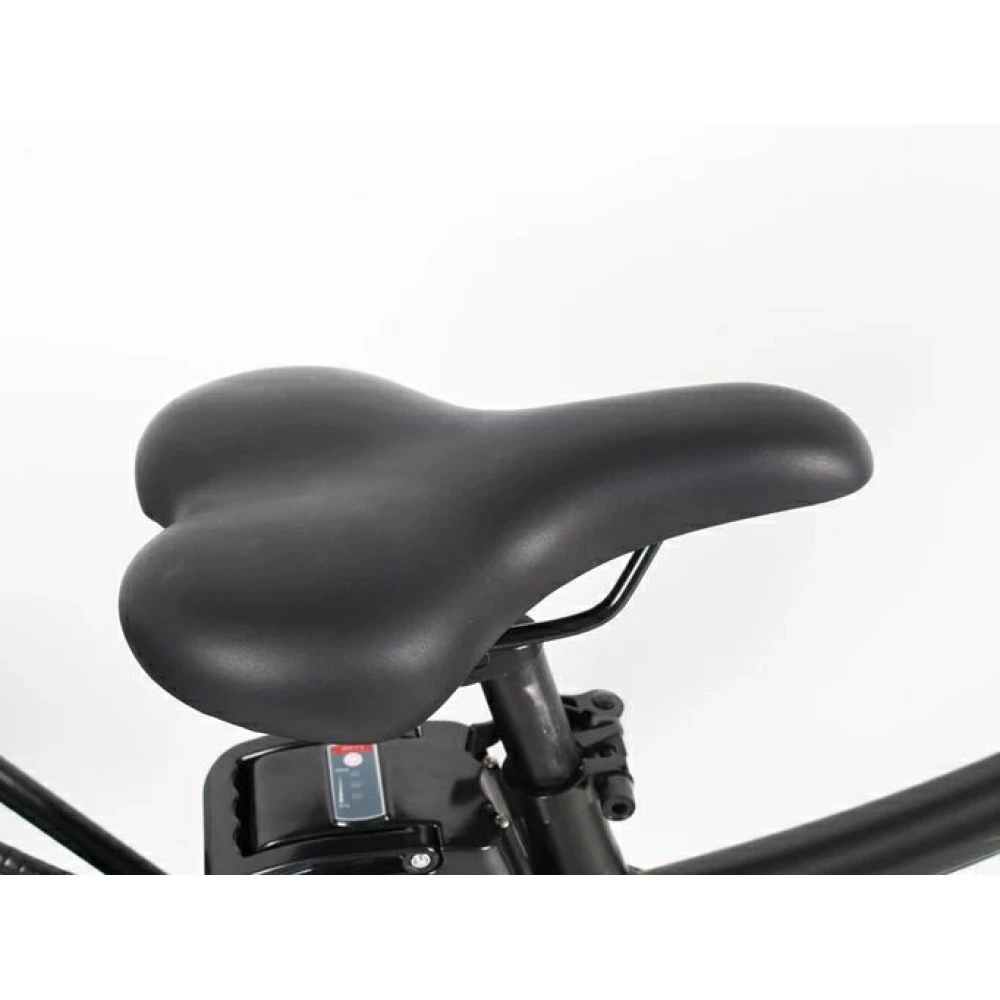 Накатистые 26-дюймовые колеса не знают препятствий. С учетом передних амортизаторов обеспечивают плавность хода, минимизируют вибрации. Трансмиссия из 7 скоростей увеличивает степень комфорта. Информационный дисплей оснащен светодиодными индикаторами. Удобство езды и отсутствие дискомфорта обеспечены регулируемым анатомическим седлом.