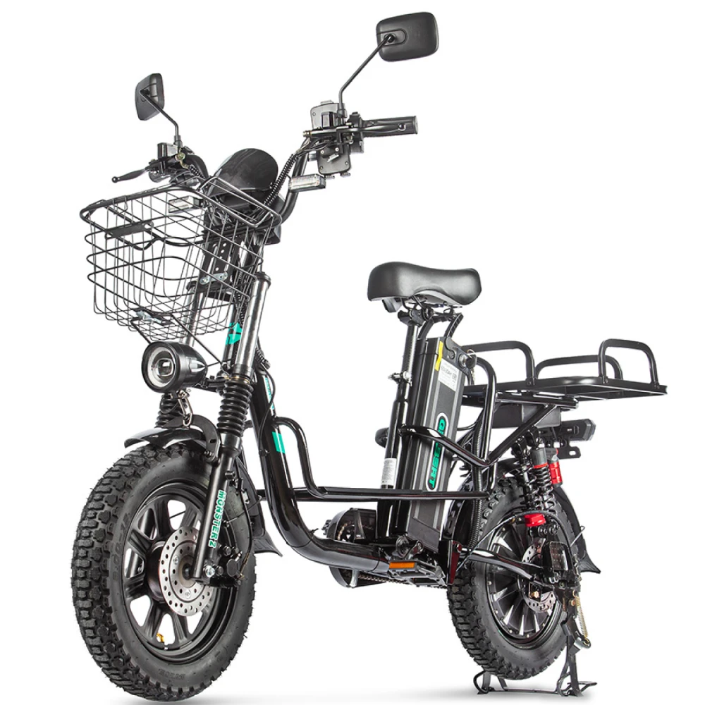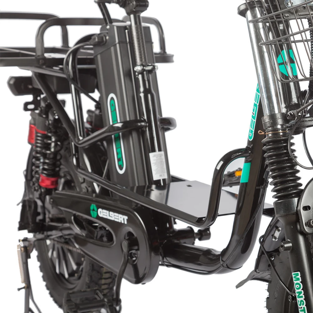 Электровелосипед Eltreco Gelbert Khan Monster 2 – это современное средство передвижения, сочетающее в себе продуманную конструкцию, передовые технологии и стильный дизайн для уверенных городских и пригородных поездок.Модель оснащена передним и задним амортизаторами, которые эффективно смягчают неровности дороги, обеспечивая плавность хода и комфорт даже на пересеченной местности. При заявленном максимальном пробеге до 100 км на одном заряде этот велосипед подходит для длительных поездок – конечно, реальные показатели зависят от веса райдера, рельефа местности, погодных условий и температуры окружающей среды.Безопасность обеспечивается за счет дисковых гидравлических тормозов, которые гарантируют надежное и своевременное торможение в любых ситуациях. Легкий вес в 57 кг позволяет легко маневрировать, а максимальная нагрузка до 150 кг делает модель универсальной для разных категорий пользователей.Двигатель мощностью 240 W, размещенный в задней части, обеспечивает эффективное ускорение и оптимальное распределение энергии, что способствует стабильной работе в условиях городской среды. Электровелосипед оборудован аккумулятором с емкостью 30 Ah и рабочим напряжением 60 V, что гарантирует долгий срок службы батареи и надежную работу даже на длинных маршрутах.Габариты в собранном состоянии – 1700×1150×800 мм – обеспечивают удобное расположение для водителя, а использование качественной стали в конструкции гарантирует долговечность и надежность всей системы. Дополнительное оснащение включает зеркала заднего вида, которые повышают безопасность, а встроенные передние и задние габаритные фары обеспечивают отличную видимость в условиях недостаточной освещенности.Стоит отметить, что данная модель не является складной, что подчеркивает ее прочную и стабильную конструкцию, рассчитанную на долгосрочную эксплуатацию. Электровелосипед Eltreco Gelbert Khan Monster 2 – это оптимальное решение для тех, кто ищет сочетание высоких технологий, надежности и комфорта в одном устройстве.